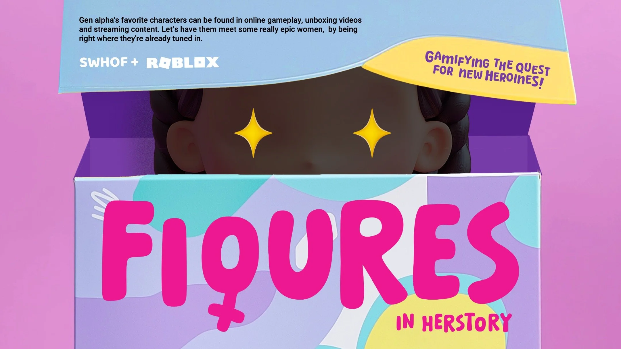 Gen alpha's favorite characters can be found in online gameplay, unboxing videos  and streaming content. Let’s have them meet some really epic women,  by being right where they're already tuned in.